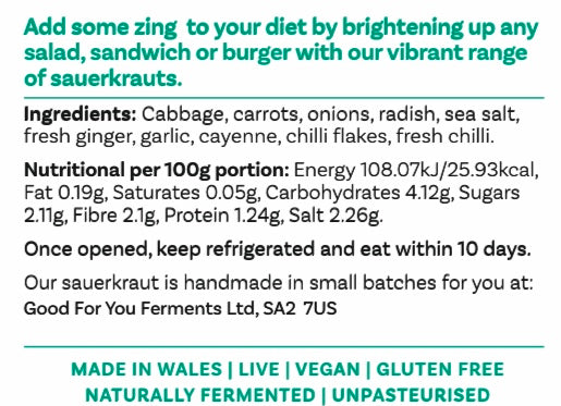 1 x Celtic Kymchi flavoured sauerkraut (Great Taste award Winner 2020)
